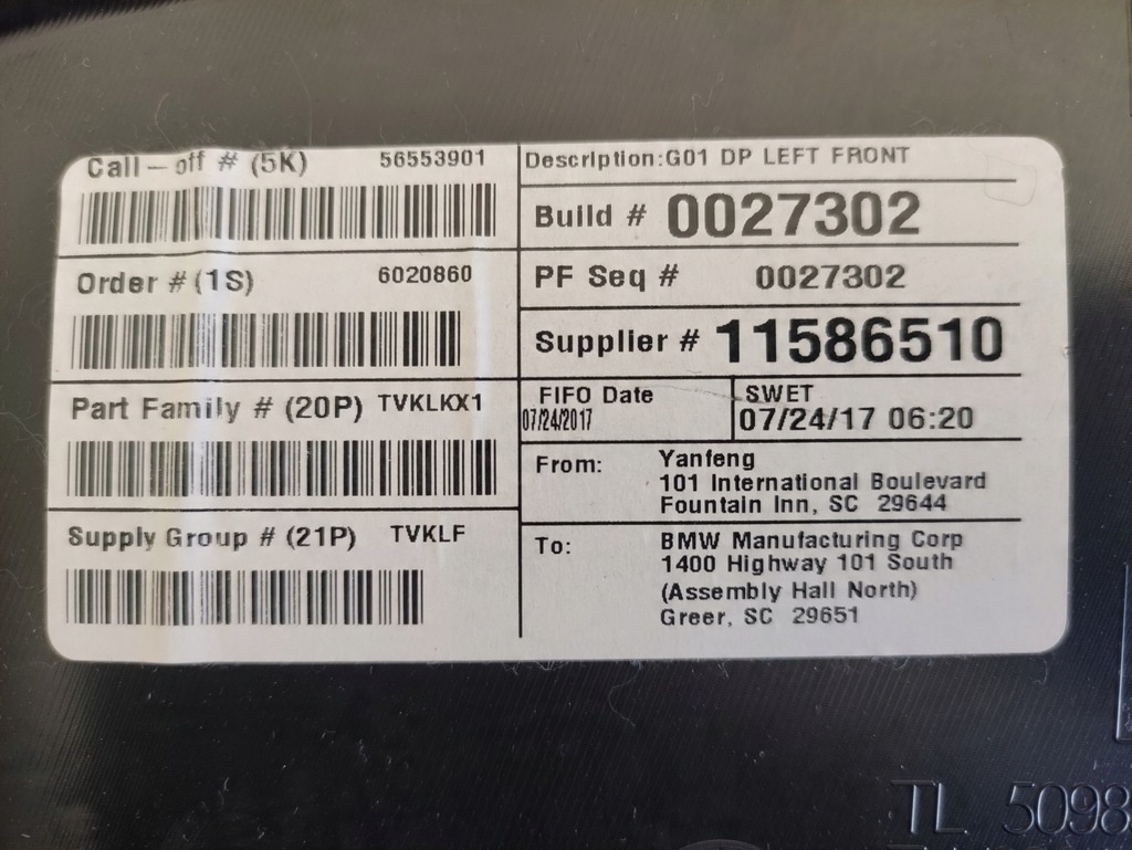 ΜΠΕΚΟΝ ΔΙΑΠΙΣΤΩΣΗ ΕΣΩΤΕΡΙΚΗΣ ΠΟΡΤΑΣ BMW X3 G01