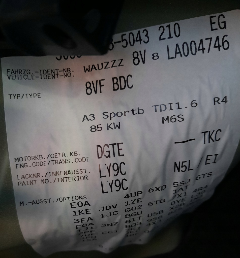ΜΕΡΟΣ ΝΟΜΙΚΗΣ ΠΡΟΕΛΕΥΣΗΣ ΓΙΑ ΚΩΔΙΚΟΠΟΙΗΣΗ ΠΑΡΕΧΟΥΜΕ ΑΡ. VIN: WAUZZZ8V8LA004746