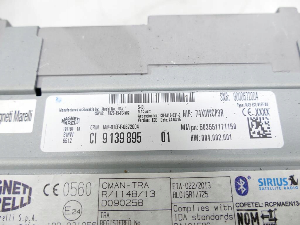 | Αριθμός αρχικού καταλόγου | 9322122, 9382417, 9286699, SCREEN. MONITOR, DRIVE, NAVI, FRAME, PANE, PANEL, HARNESS, CABLE, IDRIVE CONTROL, AUX, 9139895, SET, SET, F22 |