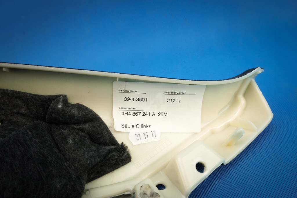 Αντικείμενο της πώλησης είναι το κάλυμμα/ταπετσαρία της πίσω αριστερής κεφαλής κολόνας "C" (alcantara) για Audi A8 4H/4H4 Long