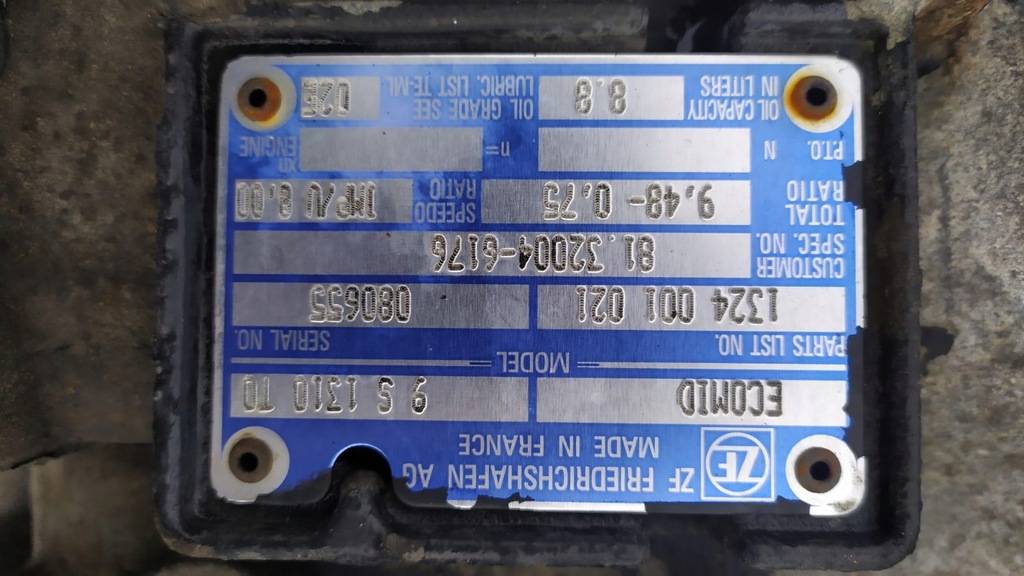 ZF 9S1310 T0 κιβώτιο ταχυτήτων ZF MAN TGM TGL Η τιμή ισχύει κατά την επιστροφή του παλιού κιβωτίου Εξάρτημα από αποσυναρμολόγηση του οχήματος