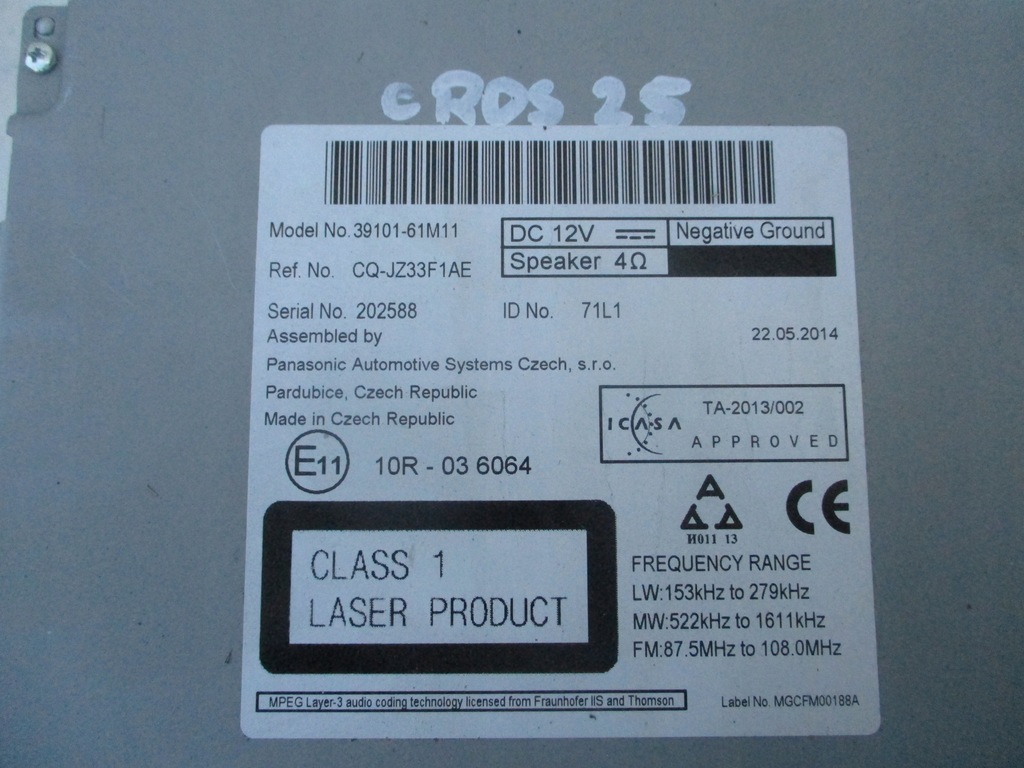 | Αριθμός αρχικού καταλόγου | 39101-61M11 |