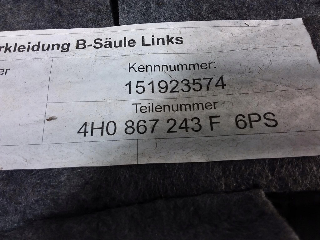 Περιγραφή: πλήρεις κουμπώσεις, κάτω κάλυμμα, εμφανή σημάδια χρήσης - Β ποιότητας && AUDI A8 D4 ΚΑΛΥΜΜΑ B-PILLAR HOUSING LEFT 4H0867243