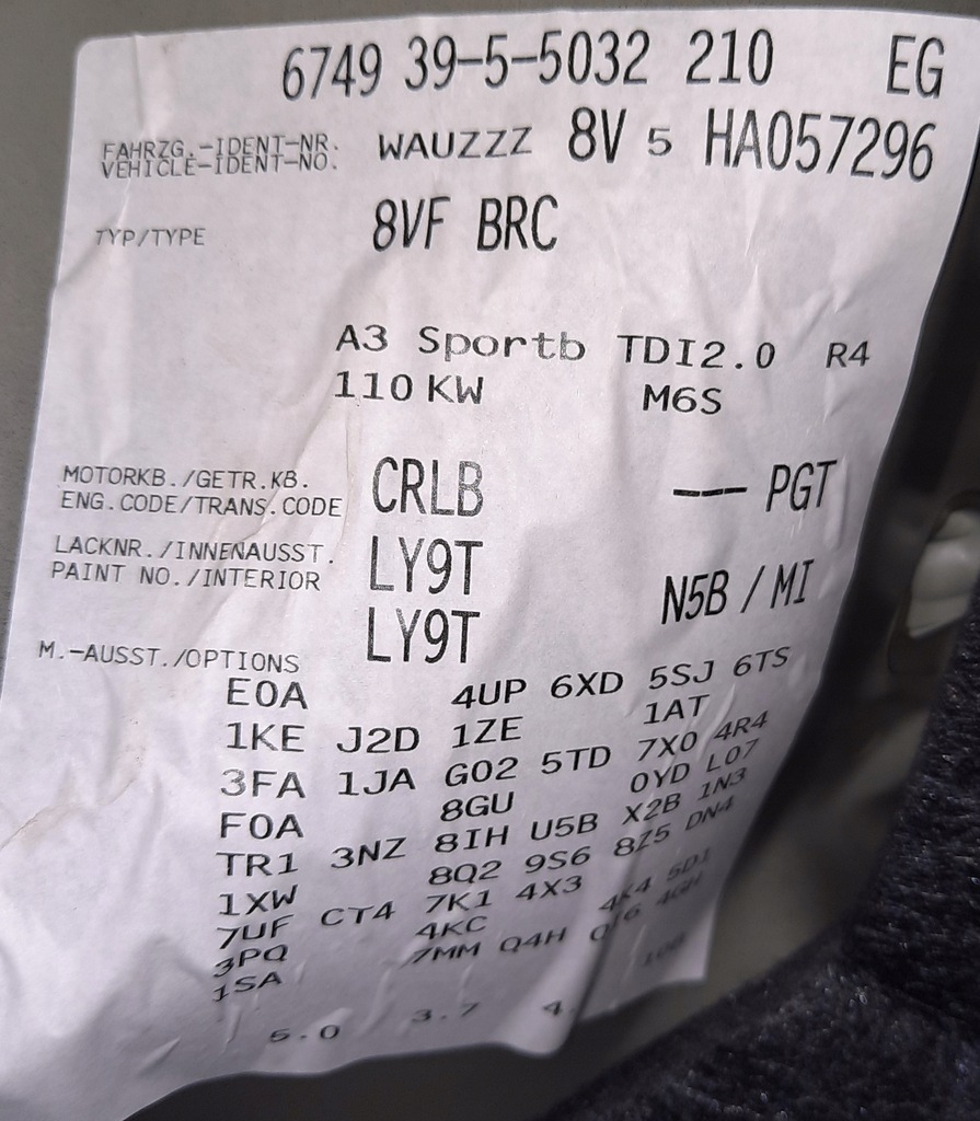 ΜΕΡΟΣ ΝΟΜΙΚΗΣ ΠΡΟΕΛΕΥΣΗΣ ΓΙΑ ΚΩΔΙΚΟΠΟΙΗΣΗ ΠΑΡΕΧΟΥΜΕ ΑΡ. VIN: WAUZZZ8V5HA057296
