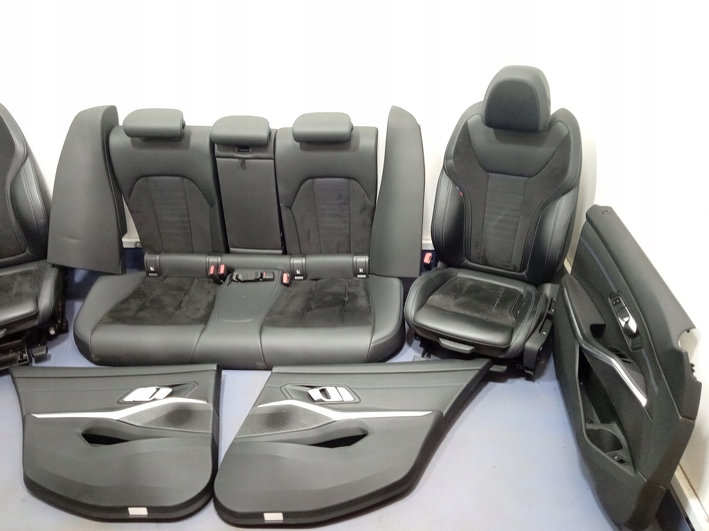 Περιγραφή: πλήρες σετ, ταπετσαρία ALCAN.-/SEN.-KOMB./SCHW.KONTR.BLAU (KGNL), μπροστινά καθίσματα χειροκίνητα ρυθμιζόμενα, θερμαινόμενα, πίσω κάθισμα με υποβραχιόνιο, ποτηροθήκη, κάθισμα με βραχίονες isofix, σετ πλαϊνών θυρών , εμφανή σημάδια χρήσης, στροφές, πλευρά οδηγού με γδαρσίματα, - ποιότητας B && BMW 3 G20 SEAT SIDES SET M-PACKAGE