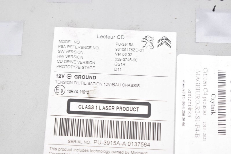 Πρόσθετες πληροφορίες: CD, II 1.6 E-HDI -Quality A && CITROEN C4 PICASSO READER 98105176ZD-01