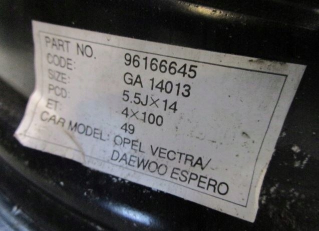 ΑΤΣΑΛΙΝΟΙ ΖΑΝΤΕΣ 14 ΙΝΤΣΩΝ ET49 4X100K ΕΡΓΟΣΤΑΣΙΑΚΟΣ ΑΡΙΘΜΟΣ: -ID: ID: 17679 ΜΑΡΚΑ ΟΧΗΜΑΤΟΣ: OPEL ΟΧΗΜΑ CO ΜΟΝΤΕΛΟ: COMBO B 94-01ΕΤΟΣ ΠΑΡΑΓΩΓΗΣ: 1998ΚΙΝΗΤΗΡΑΣ : 1998ΚΙΝΗΤΗΡΑΣ 8PV4604 ΚΙΝΗΤΗΡΑΣ: XXIPY4604.