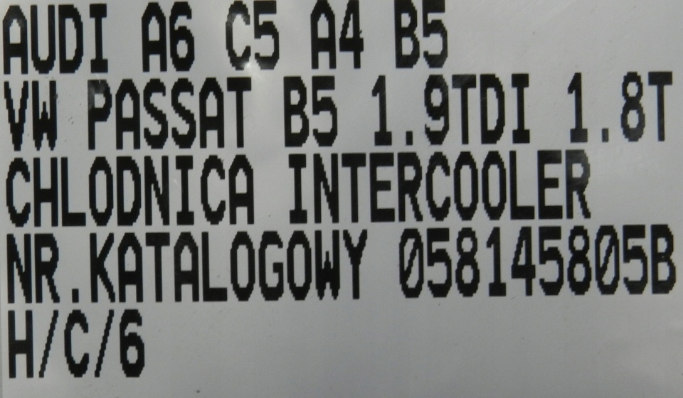 | Αριθμός ανταλλακτικού | 058145805B INTERCOOLER AUDI A6 C5 A4 B5 PASSAT B5 1.9 TDI 1.8T |
