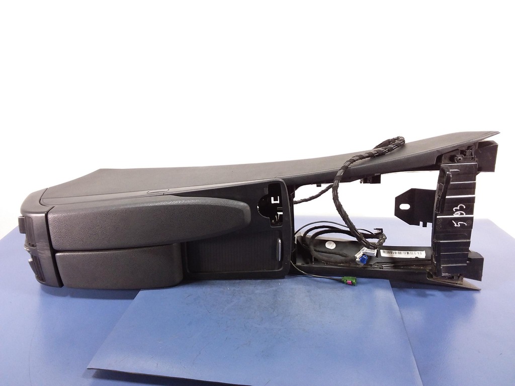 Περιγραφή: δερμάτινο υποβραχιόνιο, με βάση για τηλέφωνο, αεραγωγοί στο πίσω μέρος, ορατά σημάδια χρήσης - ποιότητα B && MERCEDES C W204 LIFT CENTER TUNNEL ARMREST