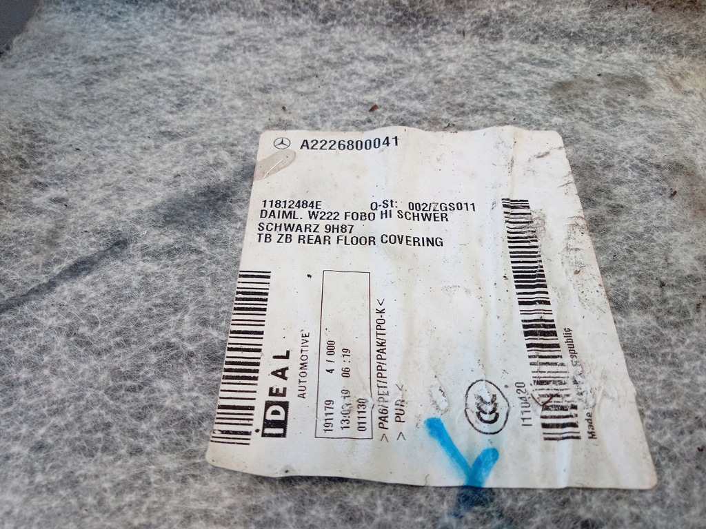Περιγραφή: χαλί πίσω σειράς, ζημιές ορατές στις φωτογραφίες - ποιότητα B && MERCEDES S W222 ΜΑΚΡΥ ΠΙΣΩ ΠΙΣΩ ΧΑΛΙ