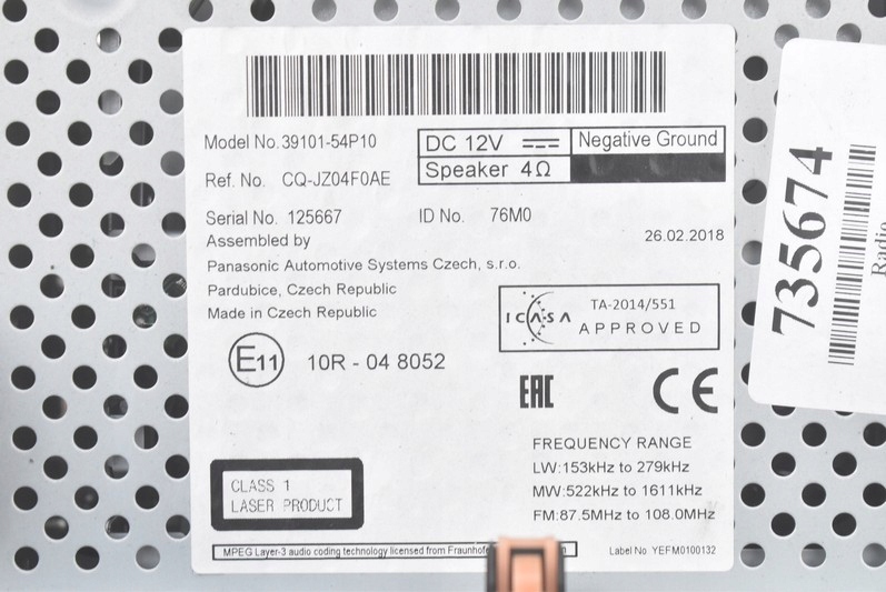 Πρόσθετες πληροφορίες: CD, BLUETOOTH, UNDECODED, III 1.6 16V -ποιότητας A && SUZUKI VITARA RADIO 39101-54P10