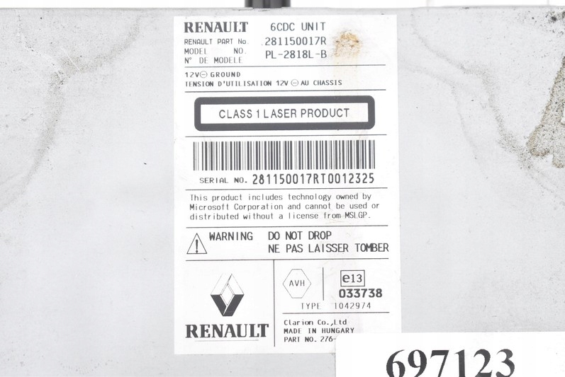 Πρόσθετες πληροφορίες: CABASSE, CD, RDS, UNDECODED, III 2.0 DCI KOMBI -ποιότητας A && RENAULT LAGUNA RADIO 281150017R