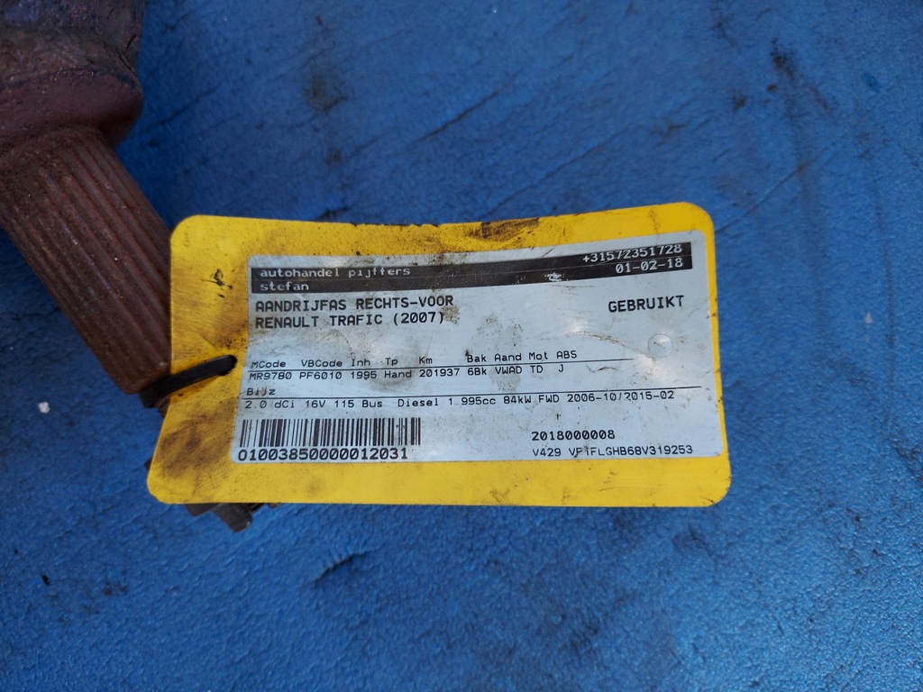 SHAFT TRAFIC 2007R 2.0 DCI RIGHT PF6010