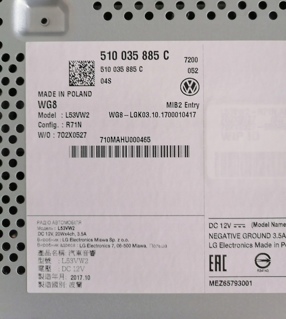 | Κατασκευαστής ανταλλακτικών | Volkswagen OE |